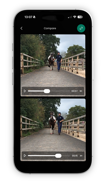 Play two videos simultaneously with side by side technology to review 'before & after' and 'then & now' videos to monitor a horses health.