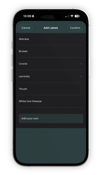 Document a horse's symptoms by selecting from our most common health problems and add personalised notes.