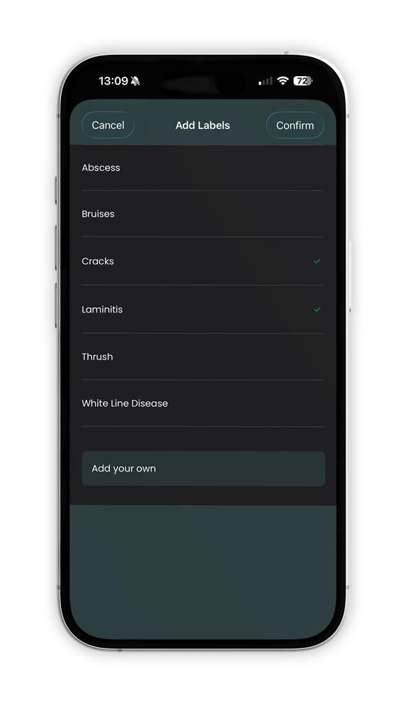 Supporting evidence at your fingertips! Unfortunately, farriers can be held responsible for movement problems that are unrelated to their work. With the ability to store videos, photos and notes, Hoofproof documents any work carried out on a horse at each visit as a means of safeguarding you, the farrier. Direct proof offers you complete peace of mind and helps to protect you against any potential accountability claims.